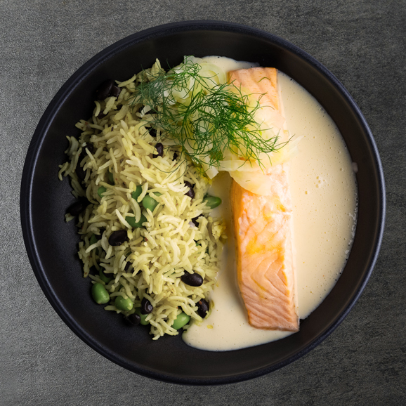 LAX(31%), basmatiris, broccoli, fänkål(9%), matlagningsVIN, svarta bönor, SOJAbönor, VispGRÄDDE laktosfri, CRÈME FRAICHE Laktosfri, hårdost, lök, purjolök, citron, vitlök, salt m jod, kryddblandning, örtkryddor